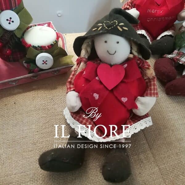 Angelo Natalizio decorazione per Albero di Natale. Ideale anche come regalo di Natale con cuore rosso, fiocco con cuori e cuoricino in legno.
