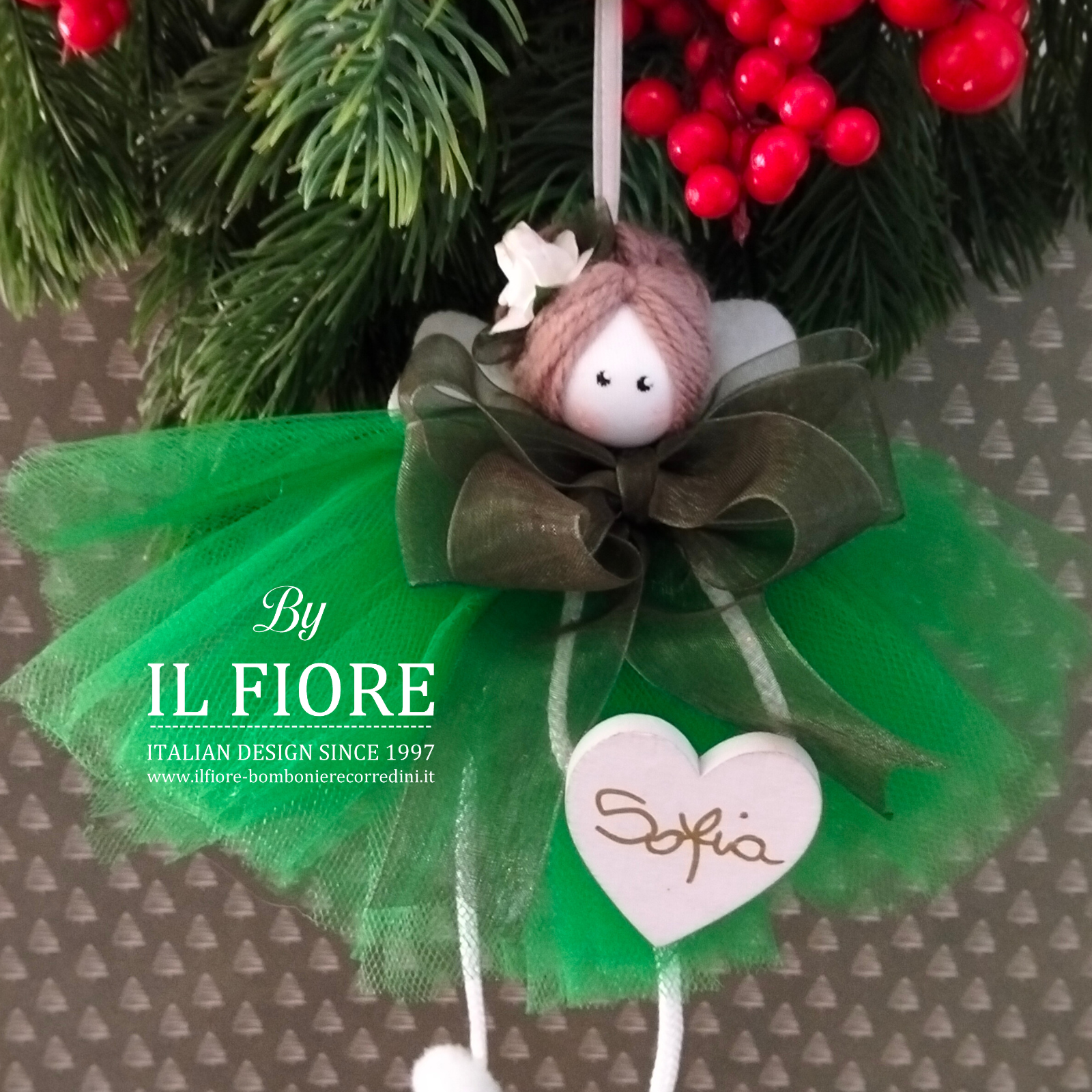 Bambola Natalizia con vestito in tulle verde personalizzabile con nome