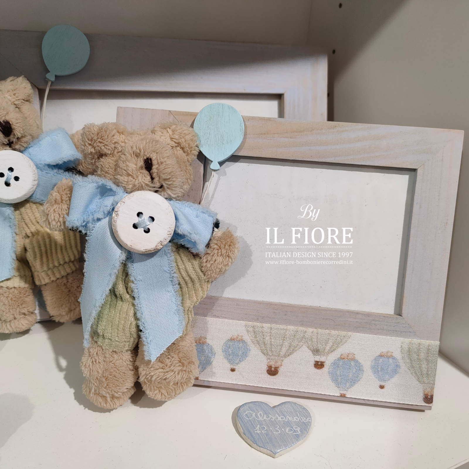 Battesimo portafoto con orsetto e palloncino