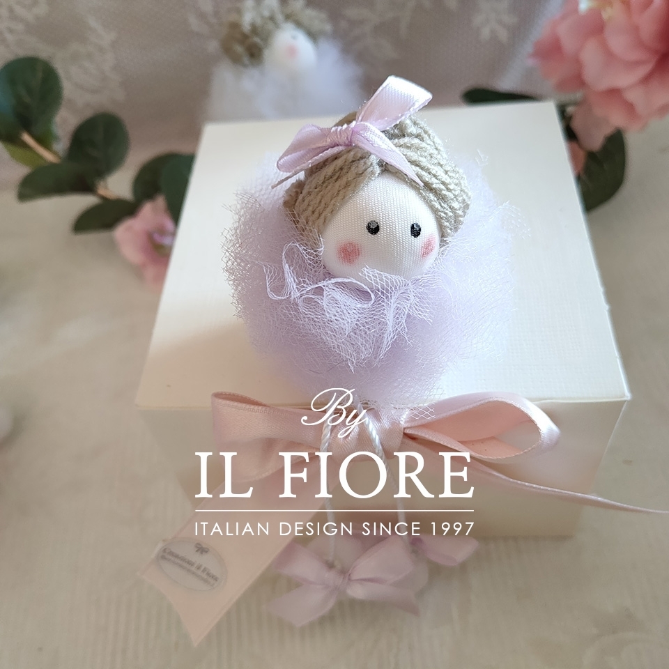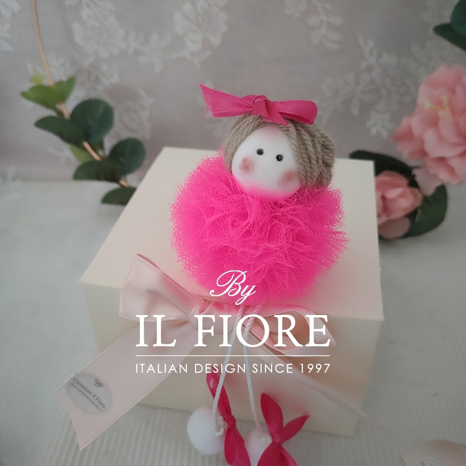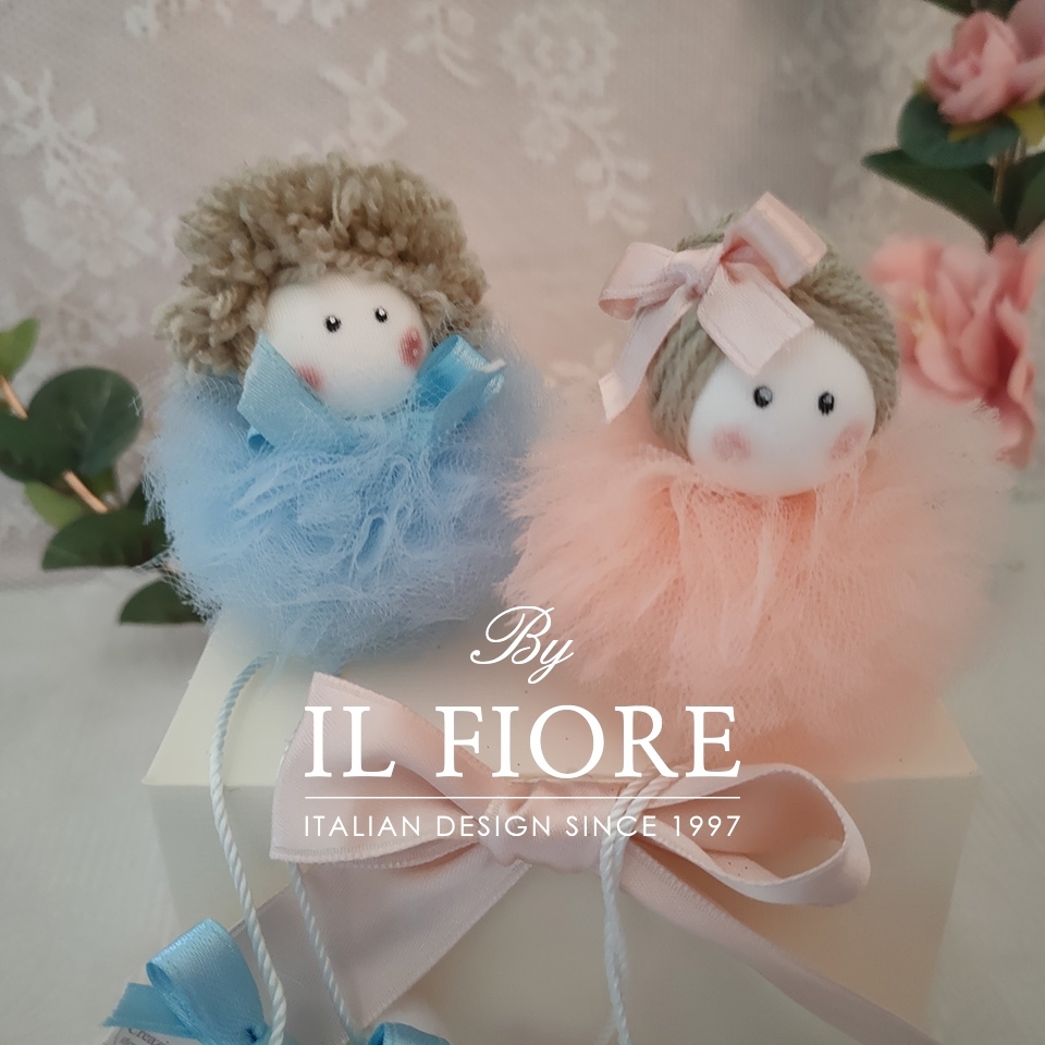 Le bambole sono disponibili bianche, rosa cipria, celeste, beige, rosa confetto, fucsia e glicine. Per bimba e bimbo.