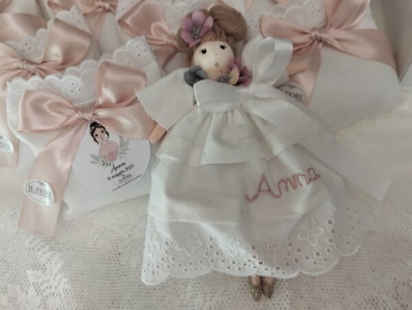 Bomboniera Battesimo bambola con vestito personalizzato con nome