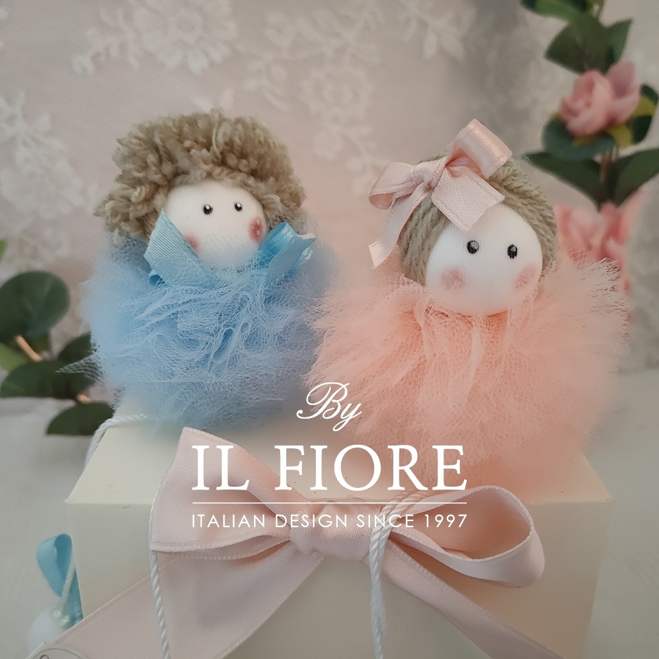 Le bambole sono disponibili in rosa cipria, celeste, rosa confetto e beige.
