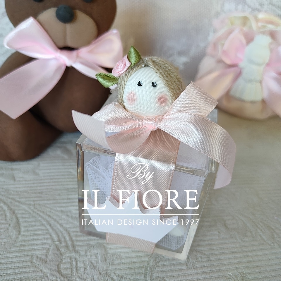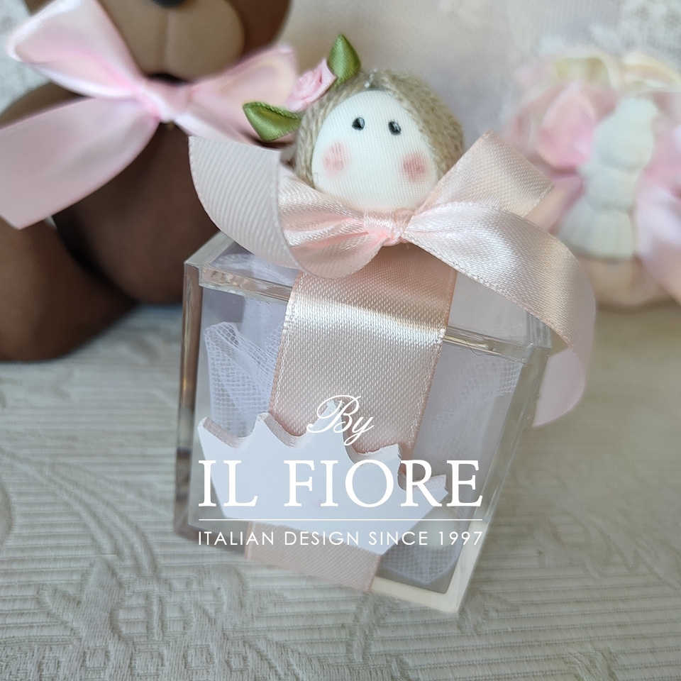 Bomboniera Battesimo scatola in plexiglass con Principessa o Principino e coroncina.