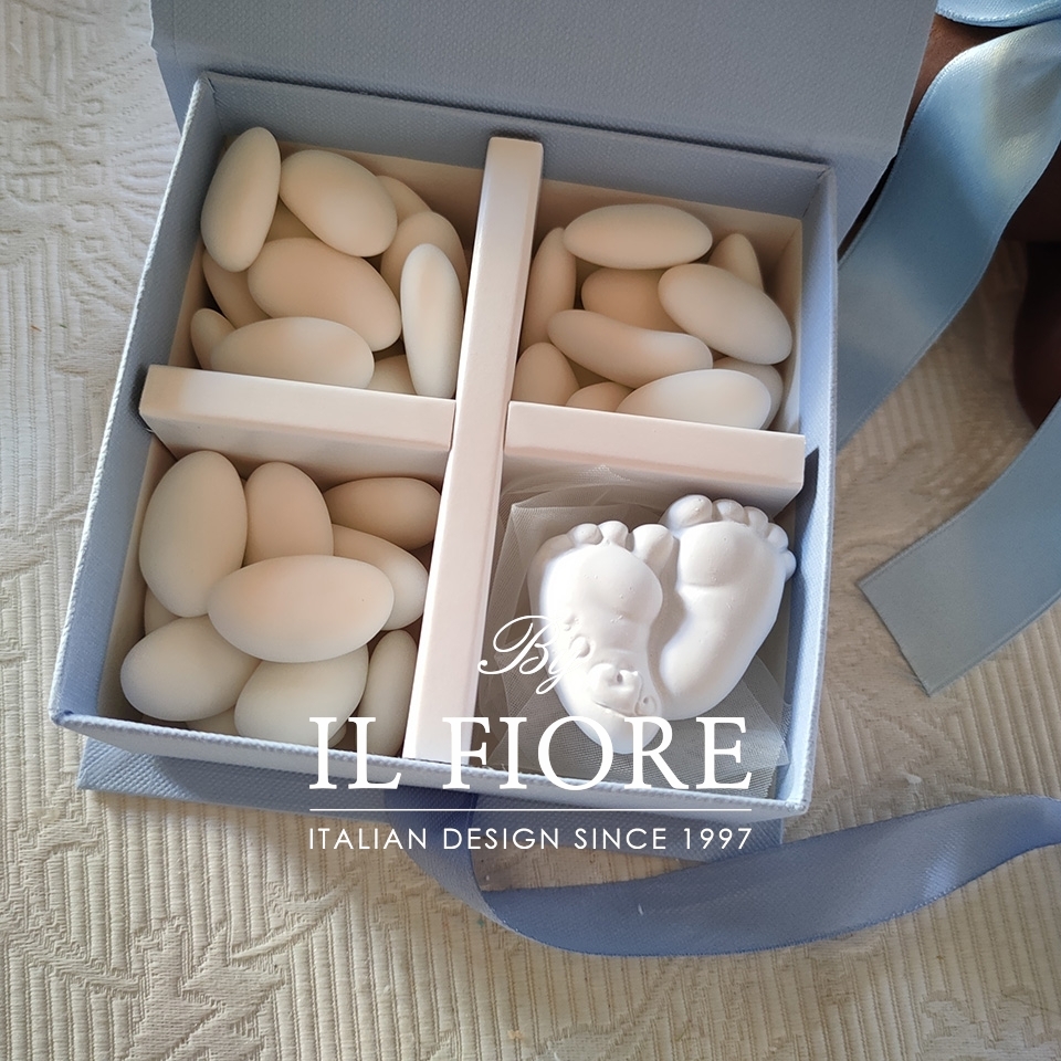 Bomboniera Battesimo bimba e bimbo scatola scomparti con confetti