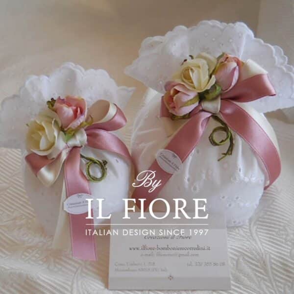 Bomboniera Battesimo Bimba Sacchetto San Gallo con fiori