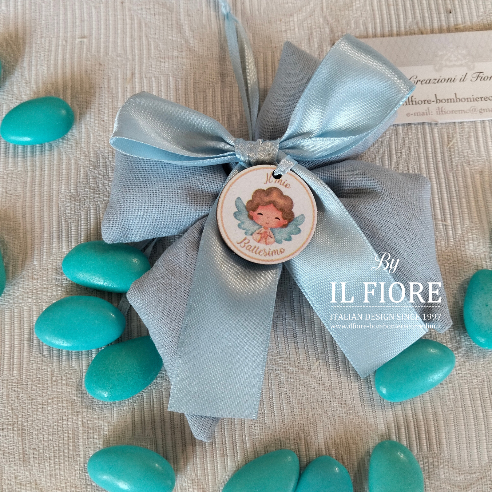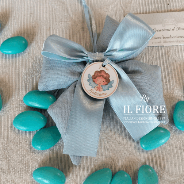 Bomboniera Battesimo bimbo fiocco con tag in legno il mio Battesimo