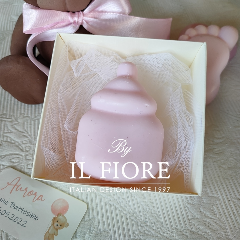 Bomboniera Battesimo candela bebè rosa o celeste
