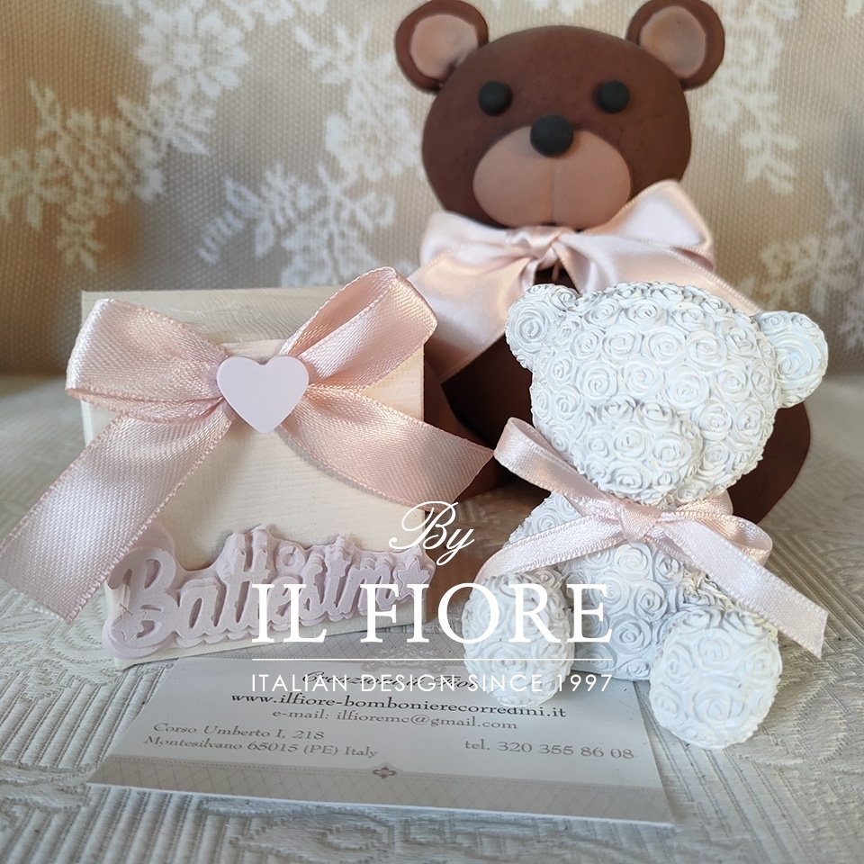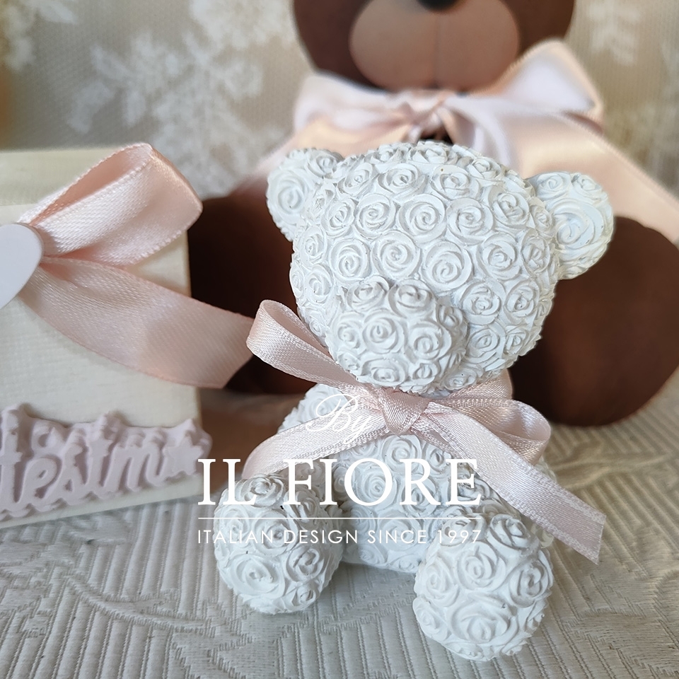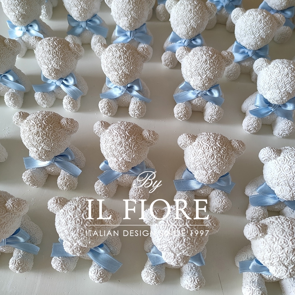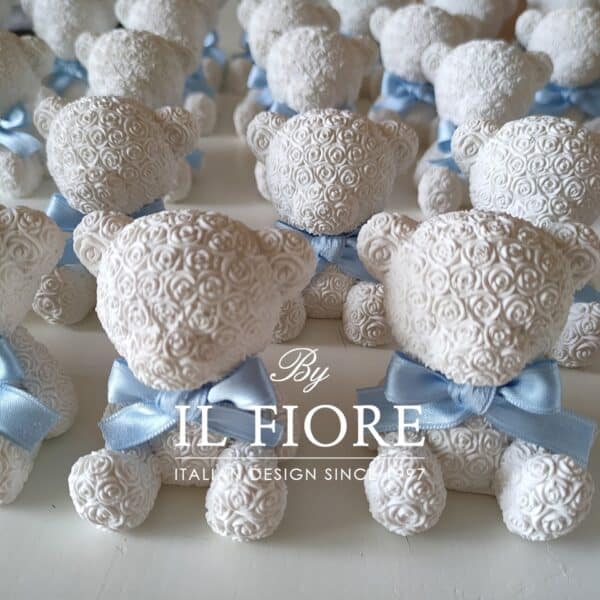 Bomboniera Battesimo con orsetto per bimbo e bimba in gesso profumato.