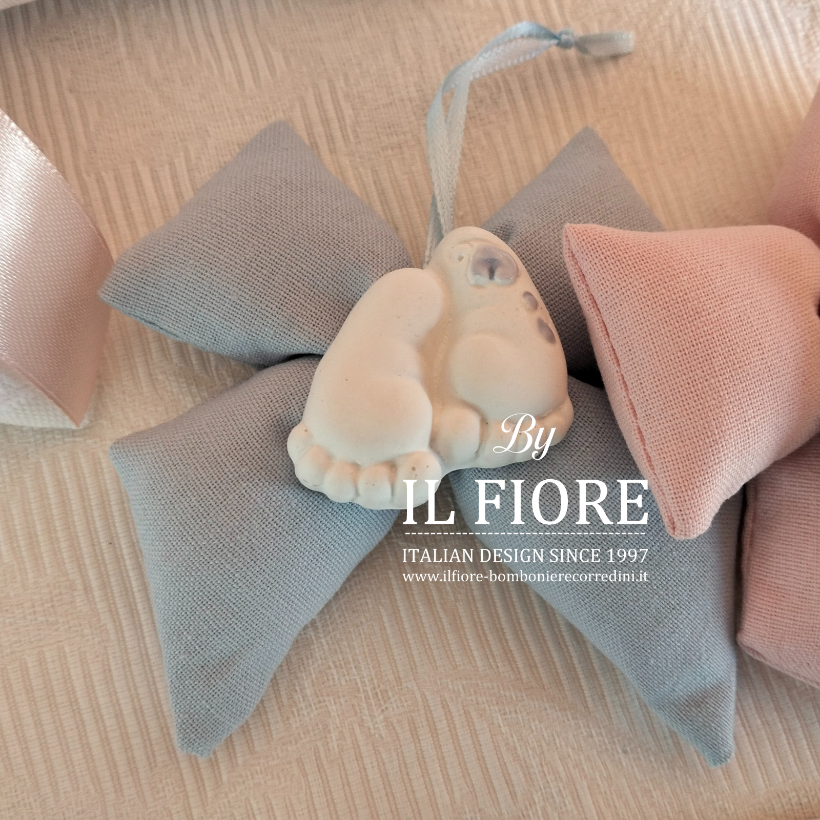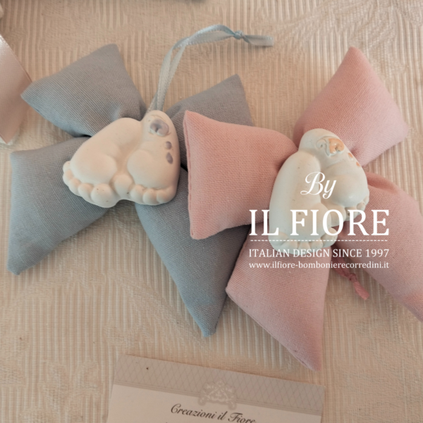 Bomboniera Battesimo PIEDINI bimba/o fiocco con calamita piedini.