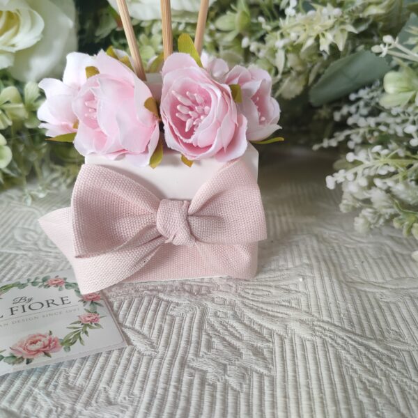 Bomboniera profumatore in gesso con fiori rosa o celeste.