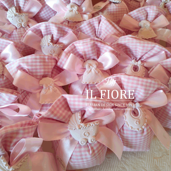 Bomboniera Battesimo bimba/bimbo sacchetto portaconfetti vichy con gessetti baby