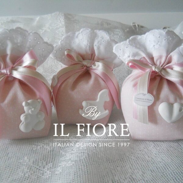 Bomboniera Battesimo sacchetto con orso cuore e cavallo