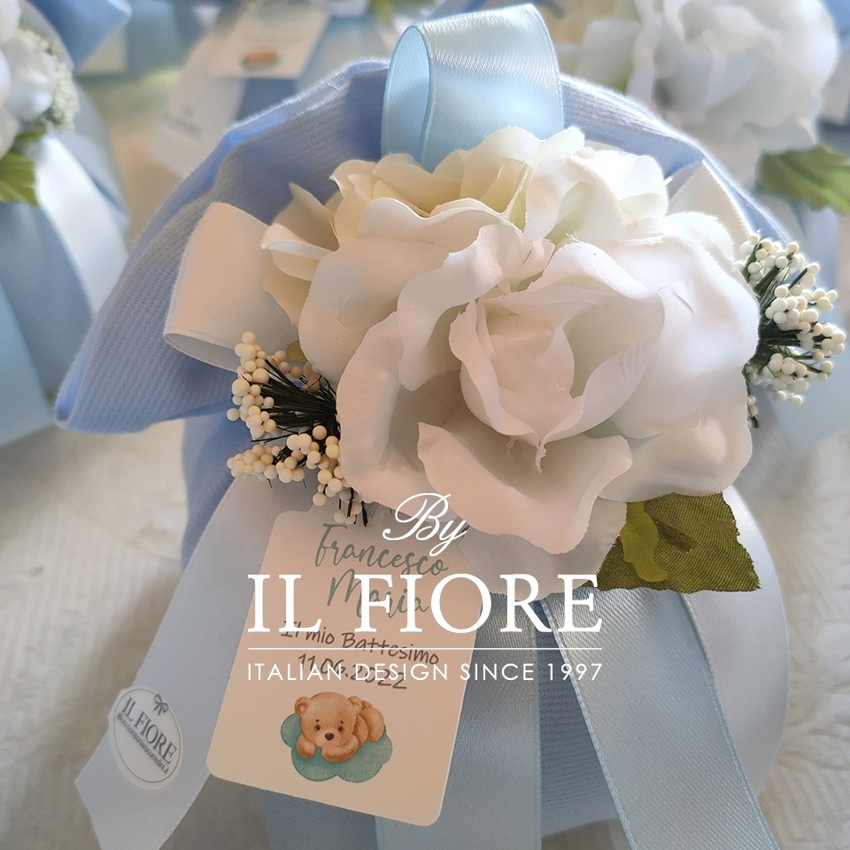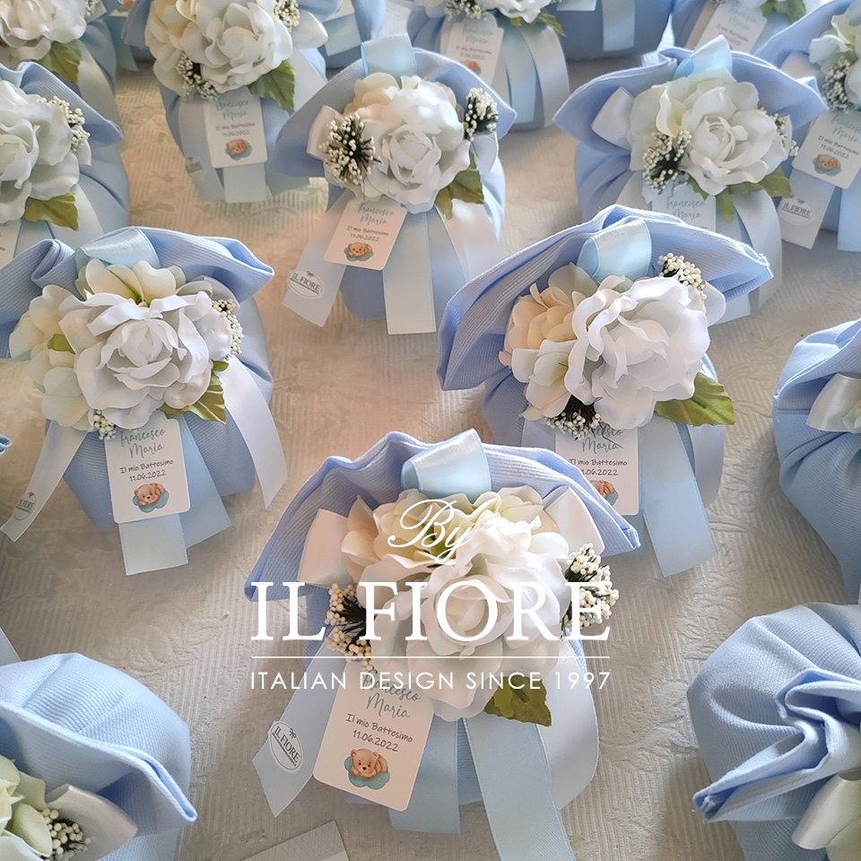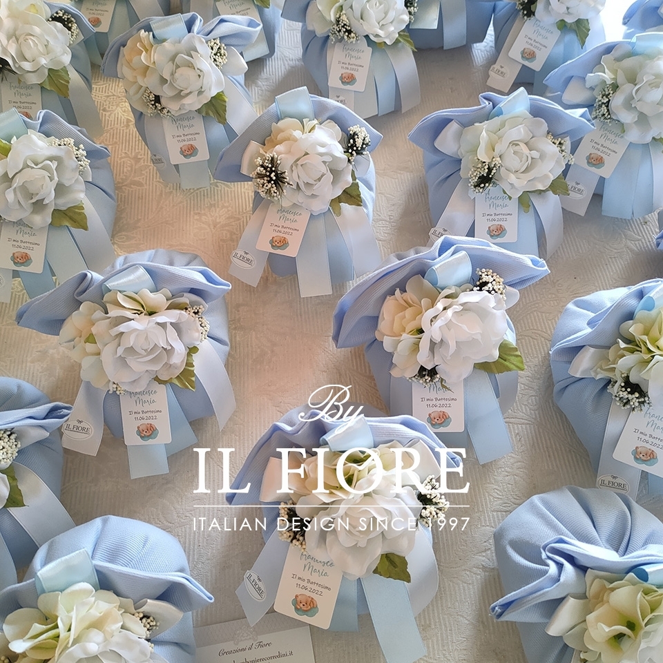 Bomboniera Battesimo sacchetto portaconfetti con fiori