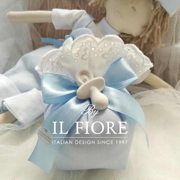 Bomboniera Battesimo Sacchetto Portaconfetti con gessetti profumati.