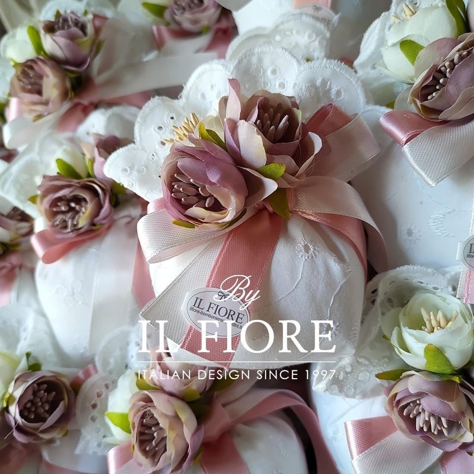 Bomboniera Battesimo sacchetto portaconfetti Sangallo con fiori