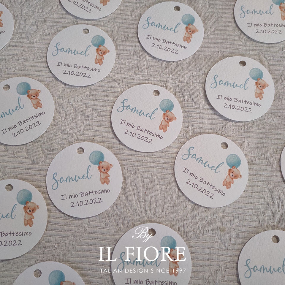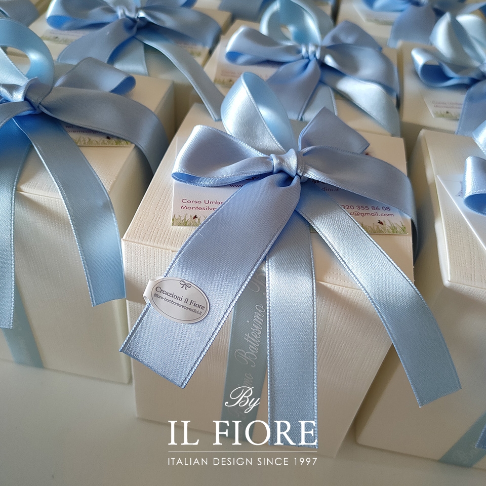 Compresa nel prezzo confezione con scatola, 5 confetti alla mandorla e tag personalizzabile.