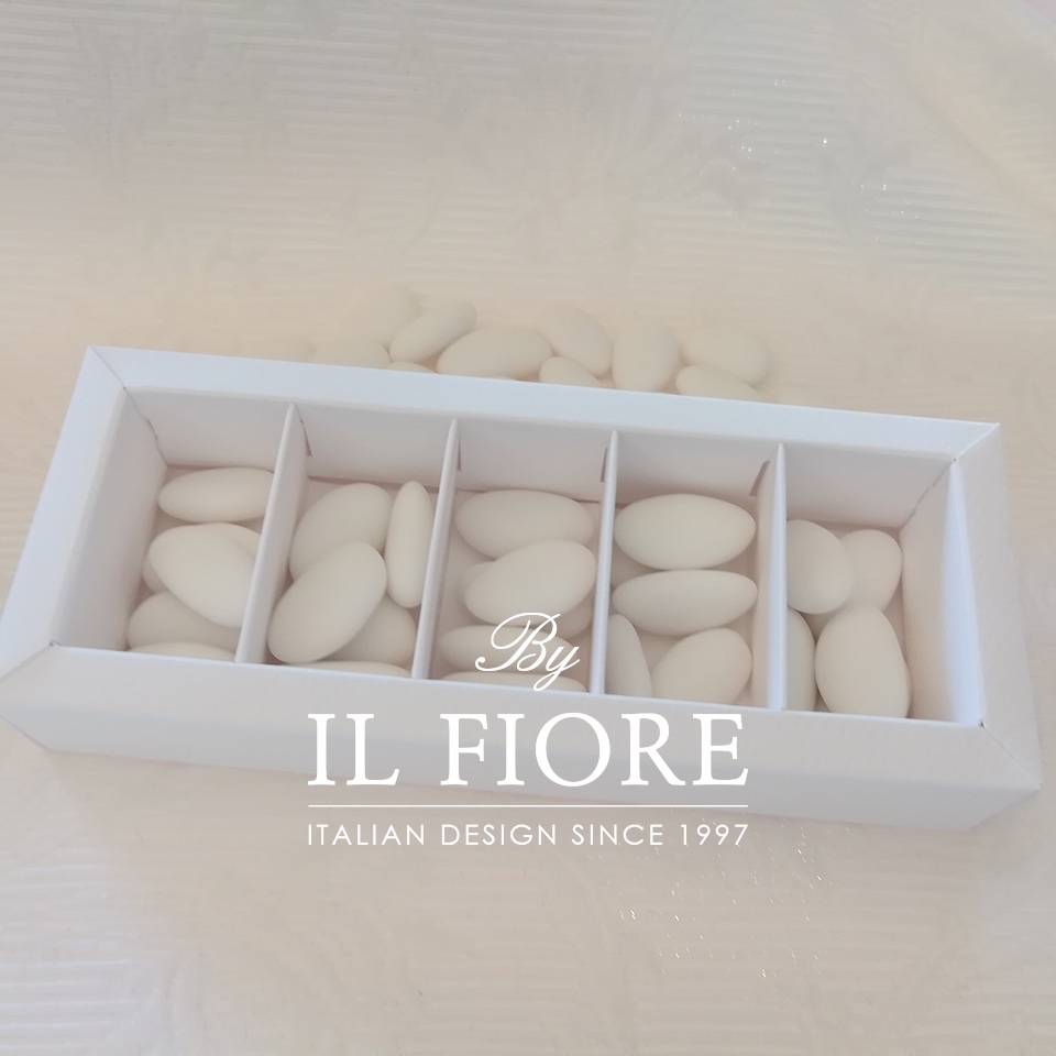 Scatola cm 17 x 7 sono compresi 25 confetti alla mandorla divisi a scomparti e biglietto in omaggio € 10,50