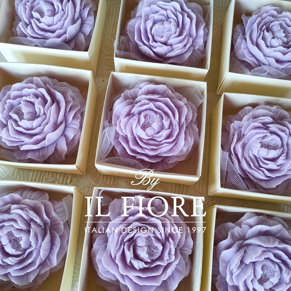 Bomboniera candela decorativa peonia per Comunione, Cresima, matrimonio e anniversario matrimonio.