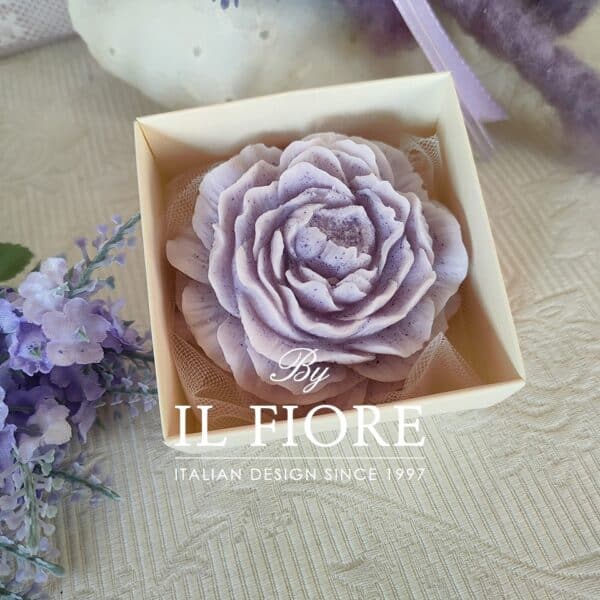 Bomboniera candela decorativa peonia per Comunione, Cresima, matrimonio e anniversario matrimonio.
