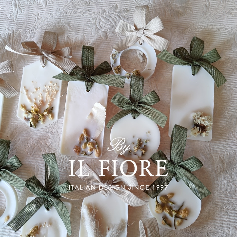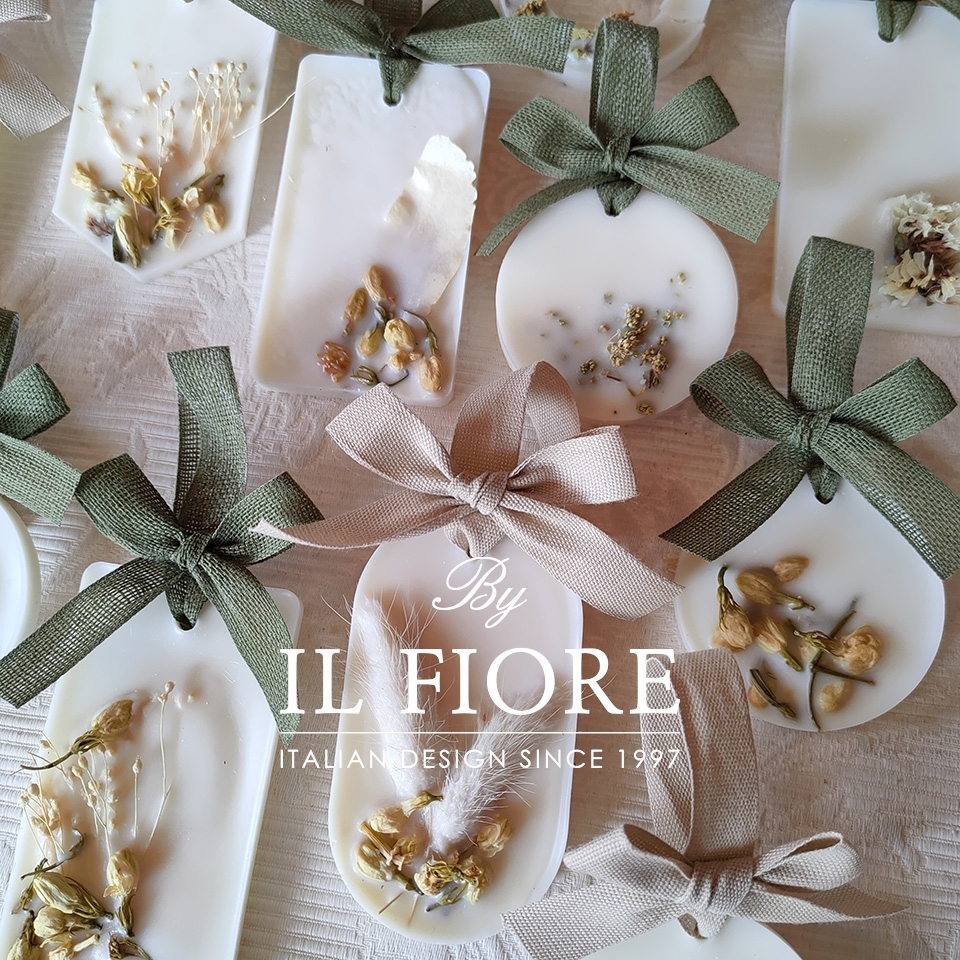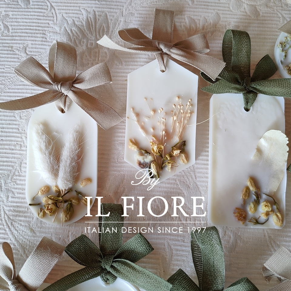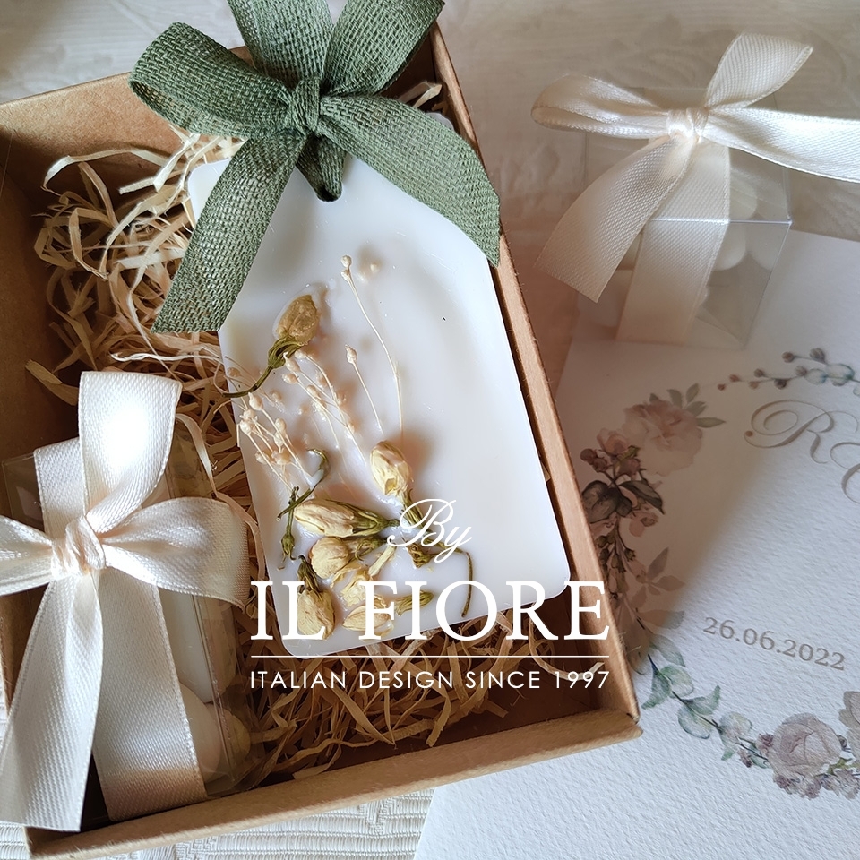 Bomboniera candele decorative con fiori secchi per Matrimonio e anniversario matrimonio. La bomboniera è realizzata con 5 forme di candele.