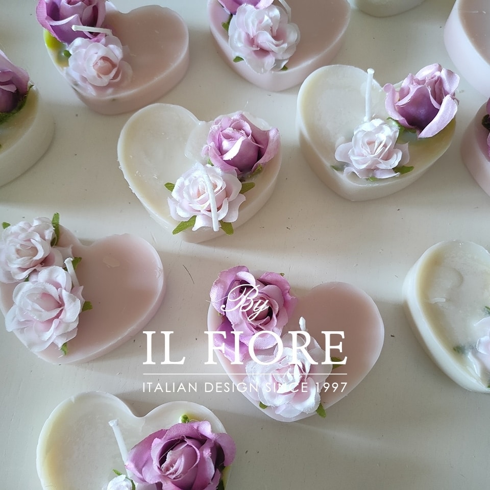 Bomboniera candele cuore con fiori per matrimonio, anniversario matrimonio, Comunione e Cresima.