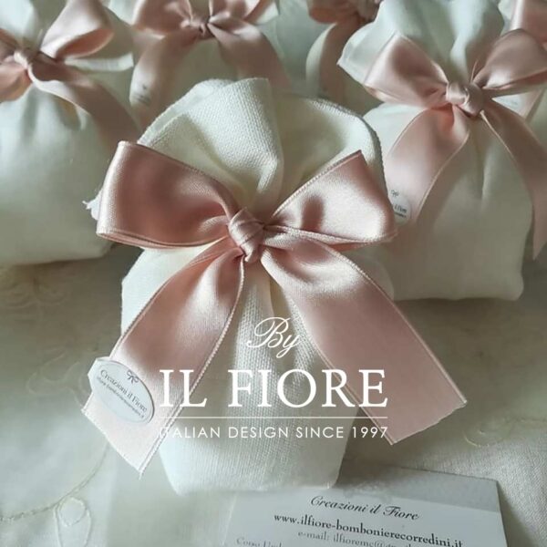 Bomboniera classica in lino con fiocco in raso color cipria.