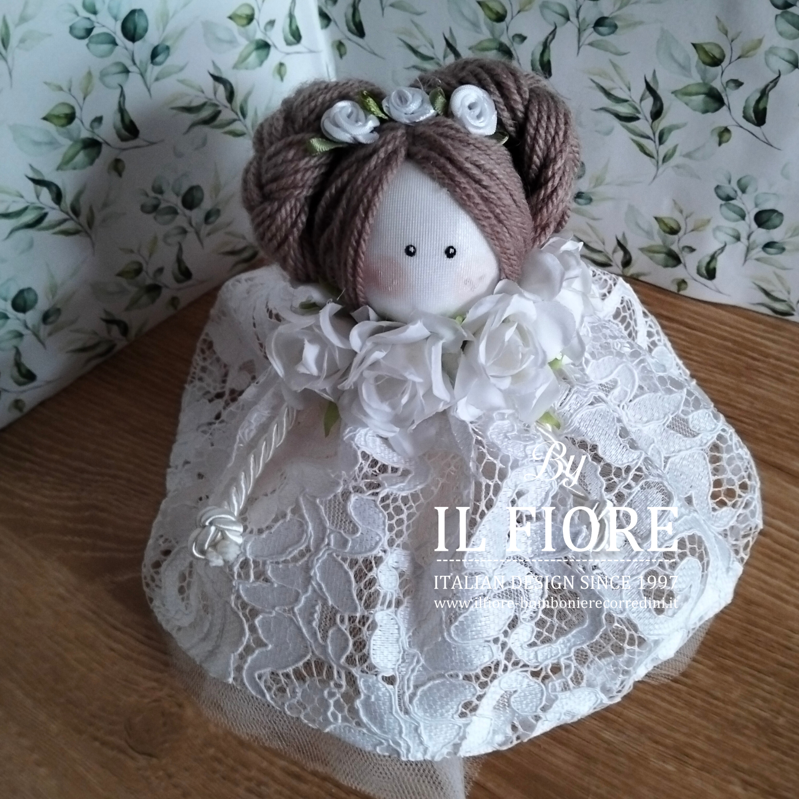 Bomboniera Comunione bambola con vestito in pizzo e fiori