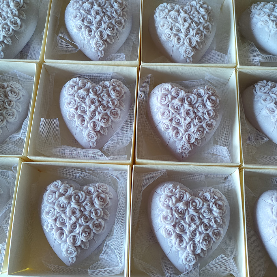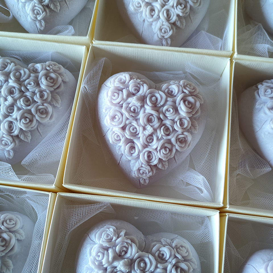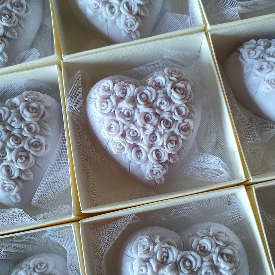 Bomboniera Comunione candela cuore con rose