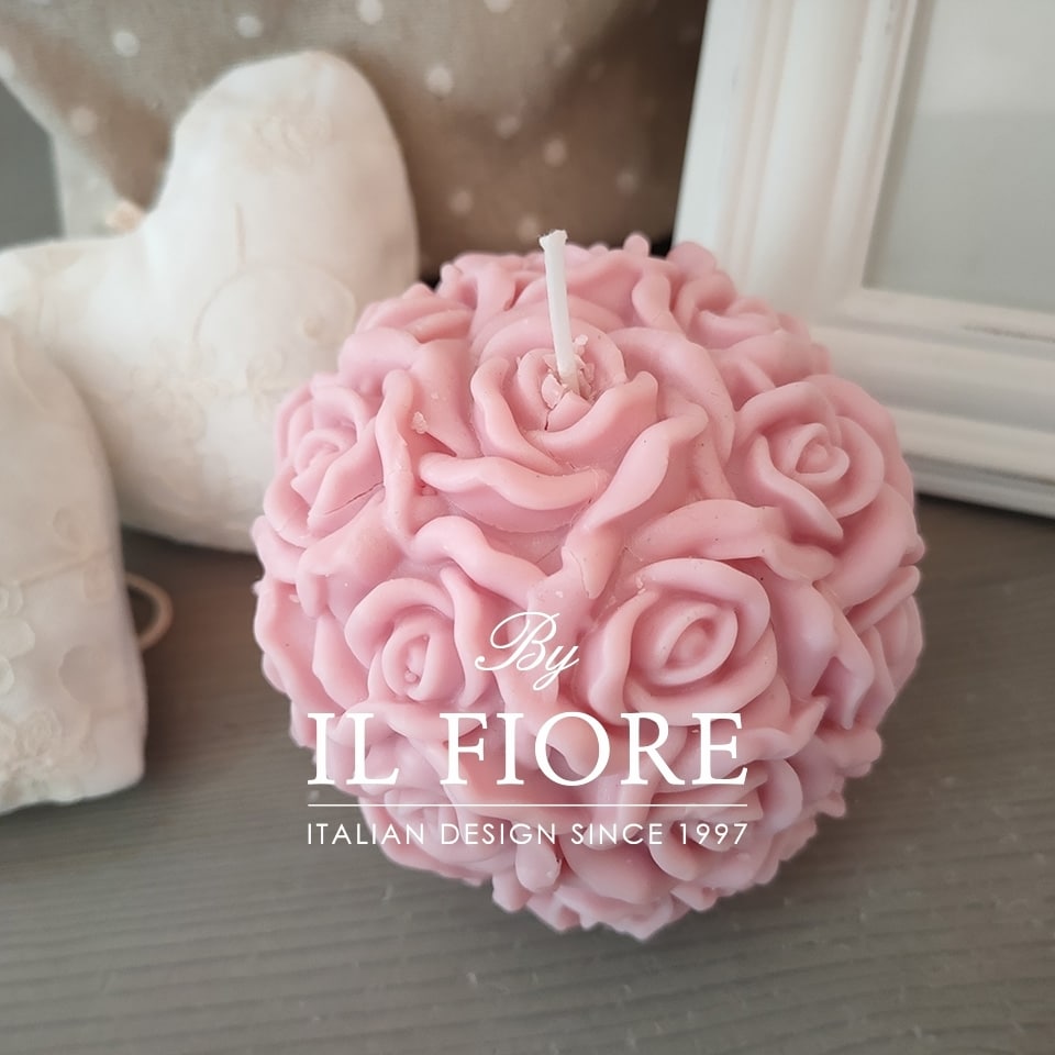 Bomboniera Comunione e Cresima candela con Roselline rosa
