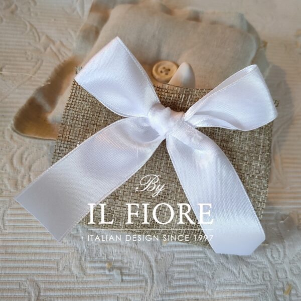 Bomboniera Comunione, matrimonio, cresima e anniversario di matrimonio, sacchetto ciuffetto porfaconfetti con fiocco con nastro di raso bianco.