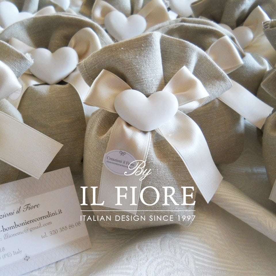 Bomboniera Cresima, matrimonio, Comunione e anniversario matrimonio in stile Shabby Chic bon bon. La bomboniera raffinata in stile chic è realizzata in cotone color tortora, decorata con nastro di raso avorio e gessetto profumato personalizzabile. Il tutto pensato per realizzare una cerimonia indimenticabile. Le nostre bomboniere sono tutte originale e uniche ma soprattutto realizzate con ottimi materiali made in Italy.