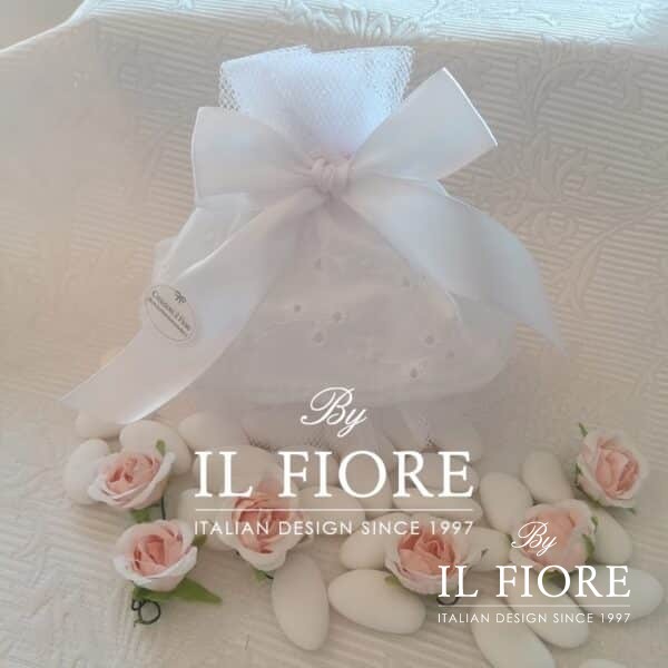 Nella bomboniera è compresa la confezione con sacchetto in organza, ciuffetto e biglietto in omaggio.