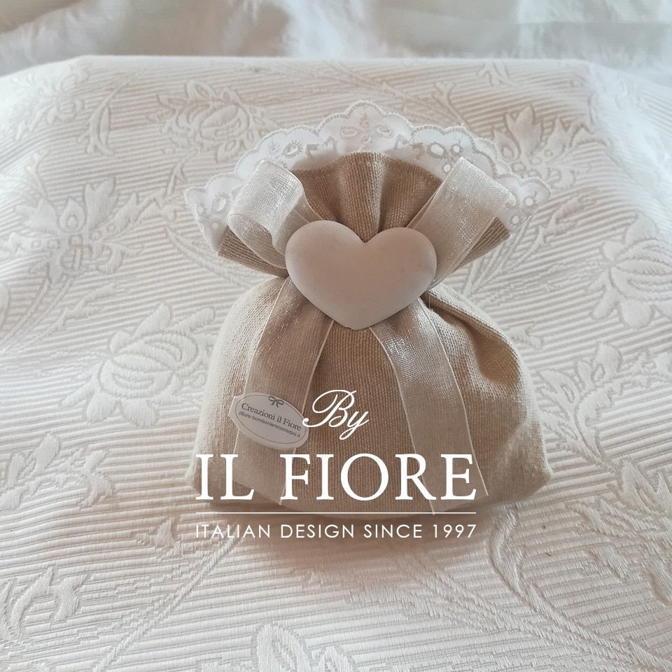 Bomboniera Comunione sacchetto con pizzo Sangallo e cuore in gesso