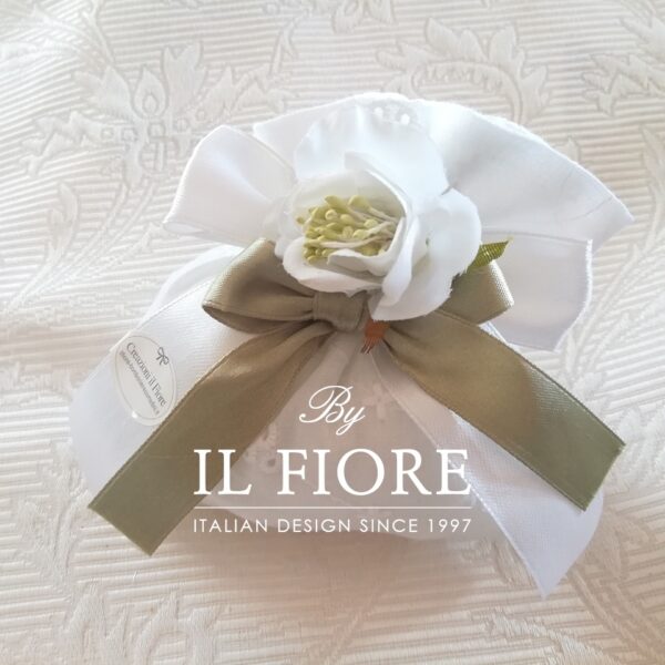 Sacchetto portaconfetti con fiore e due fiocchi in raso € 5,90 (il colore del nastro si può scegliere)