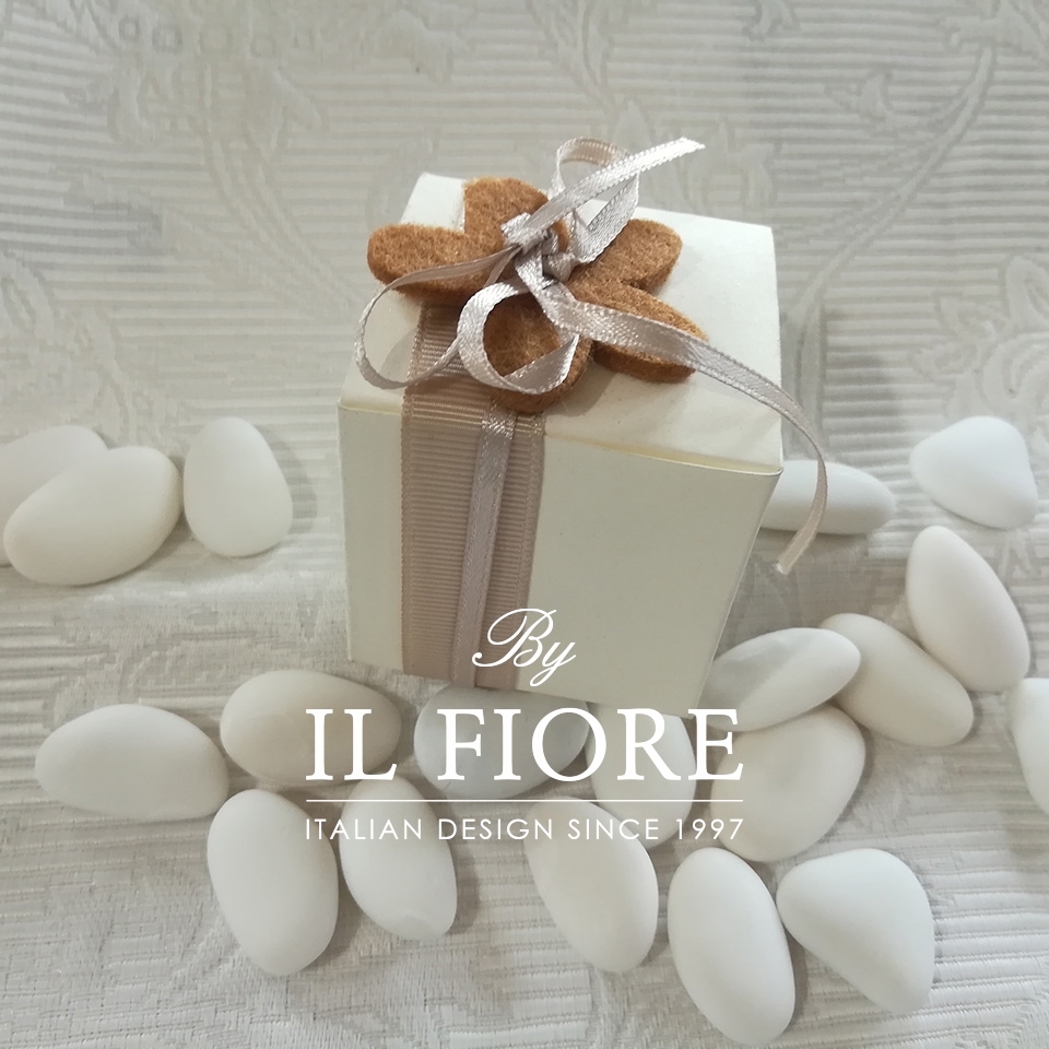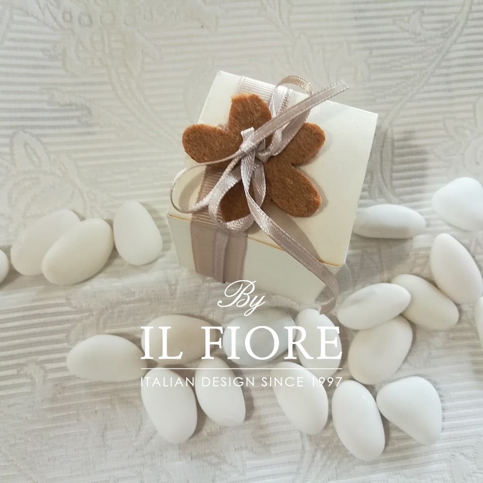 Bomboniera matrimonio, Cresima, Comunione e anniversario matrimonio. Scatola in cartone 5×5 con gessetto fiore e nastri.