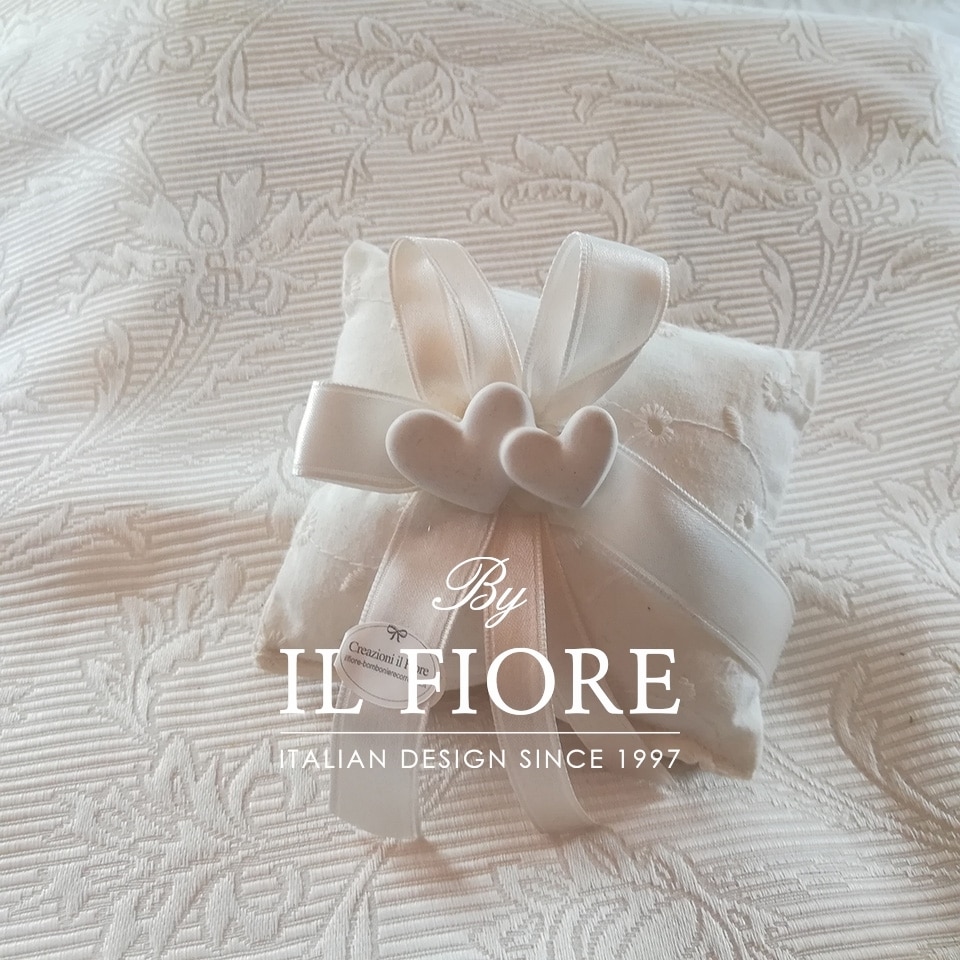 La bomboniera è realizzata con uno o due cuscini, come si preferisce. Il cuscino doppio ha il primo cuscino in Sangallo il secondo tutto bianco in cotone.