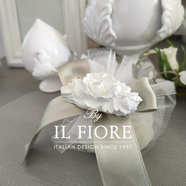 Bomboniera ciuffetto con peonia in gesso profumato per matrimonio, Comunione, Cresima e anniversario matrimonio.