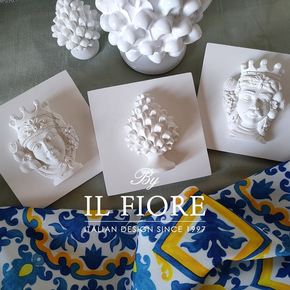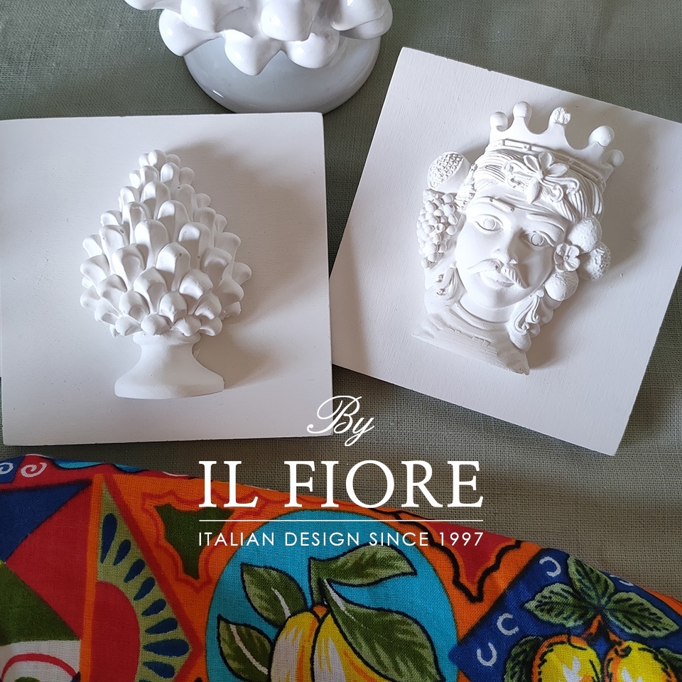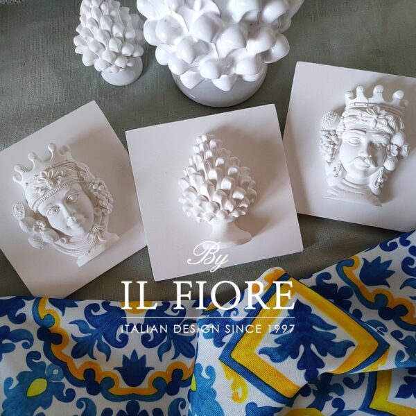 Bomboniera matrimonio mattonelle siciliane con testa di moro e pigna