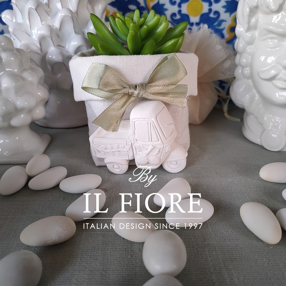 Bomboniera matrimonio piantine grasse decorate con Fiat 500 e Ape siciliana
