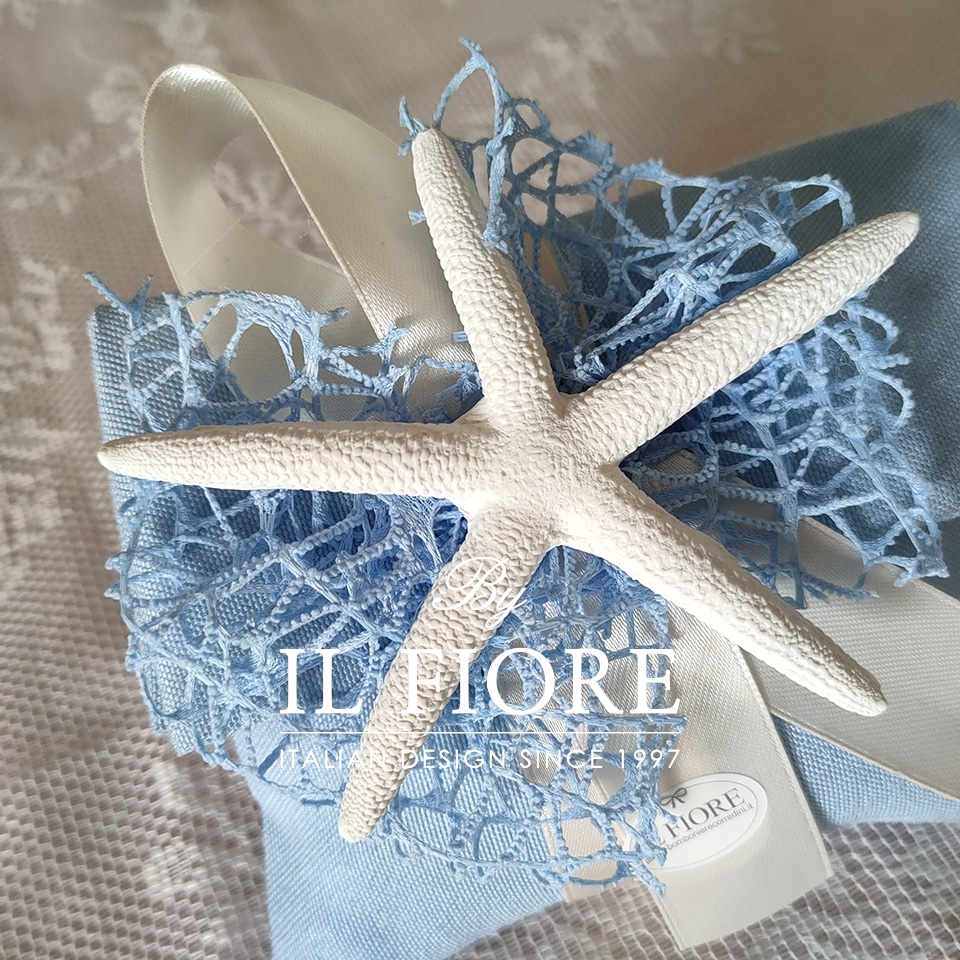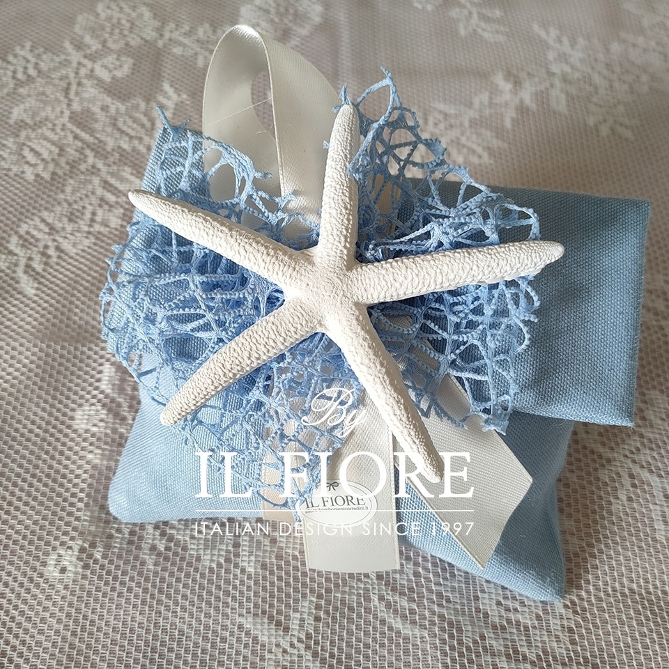 Bomboniera Matrimonio e anniversario matrimonio. Sacchetto a busta portaconfetti in stile marino con stella marina in gesso.