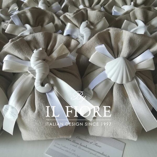 Bomboniera Matrimonio Sacchetto con Conchiglie e Cavalluccio Marino