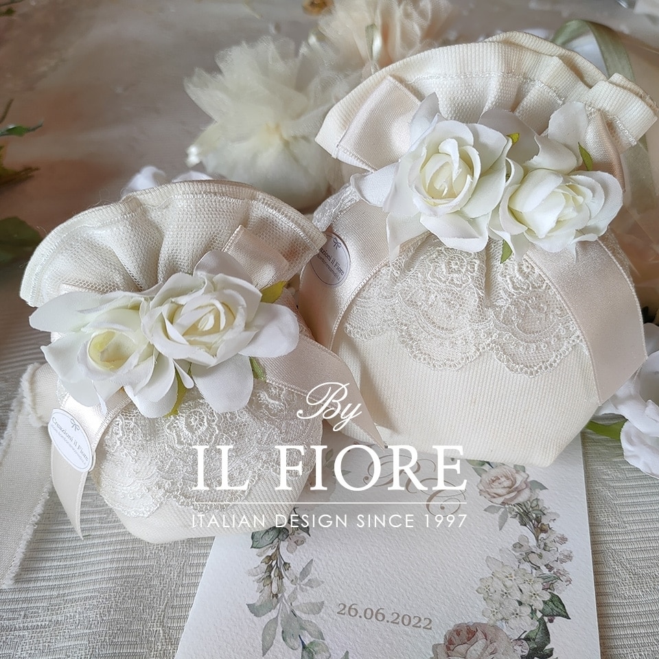 Bomboniera Matrimonio sacchetto portaconfetti cin pizzo francese e fiori