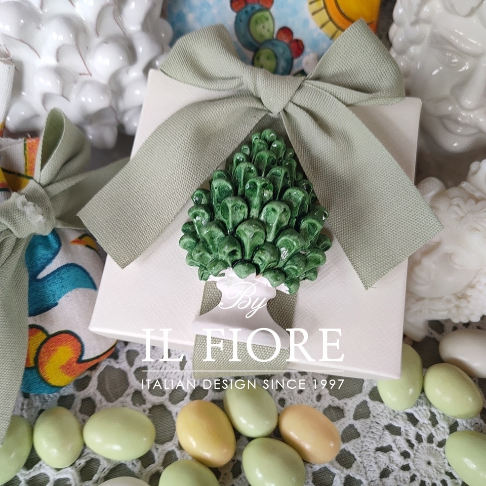Bomboniera matrimonio scatola portaconfetti con pigna siciliana verde