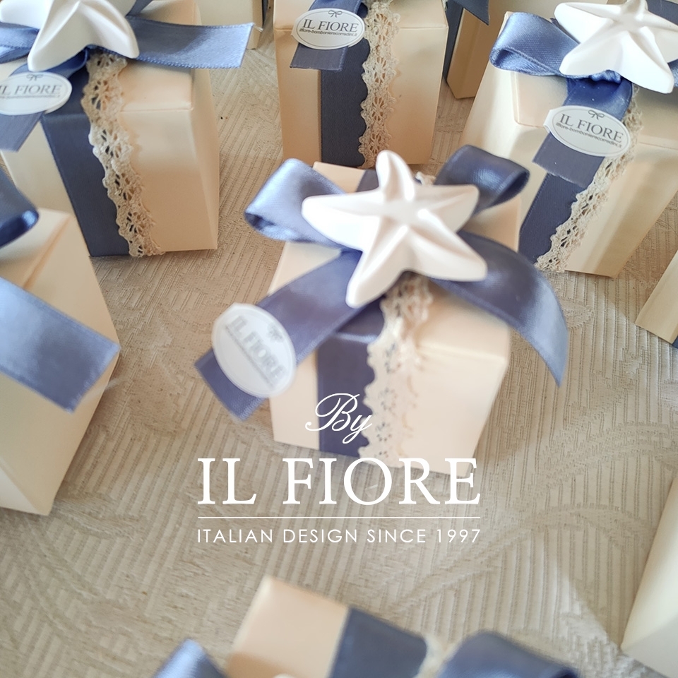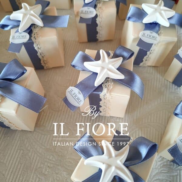 Bomboniera Matrimonio Scatola Portaconfetti con stella marina conchiglia e cavalluccio marino in Gesso