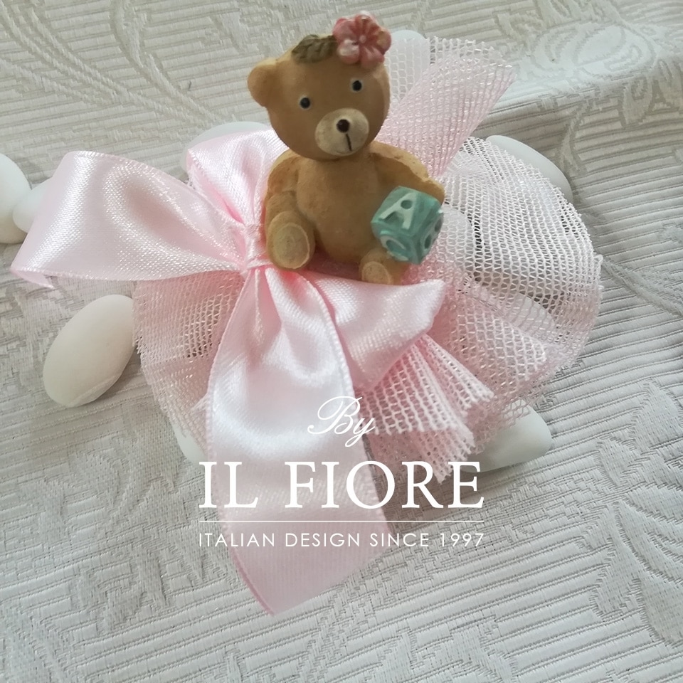 Bomboniera nascita bimba ciuffetto portaconfetti con orsetto