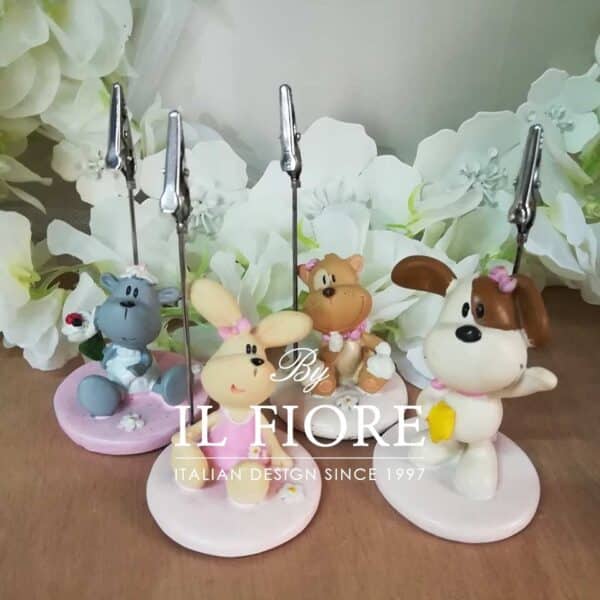 Bomboniera nascita bimba e bimbo, ciuffetto in tulle con portafoto animaletti.