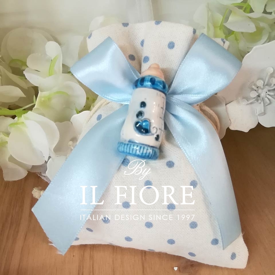 Bomboniera sacchetto portaconfetti con calamita Biberon per Battesimo Nascita