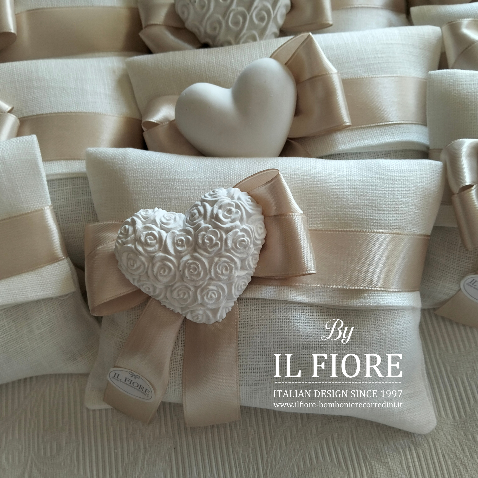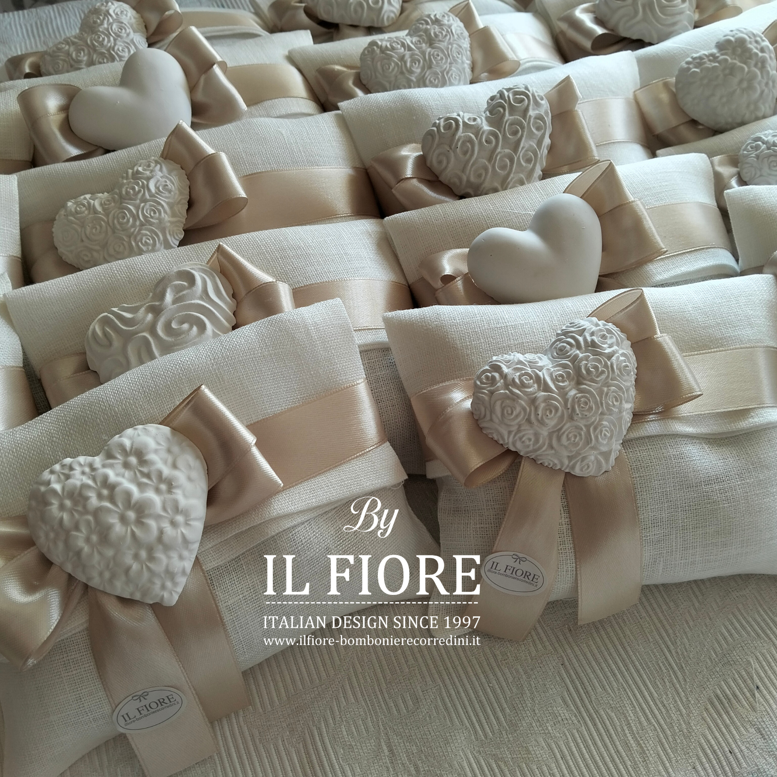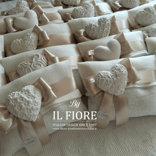 Bomboniera anniversario di matrimonio busta con cuori e fiocco di raso.