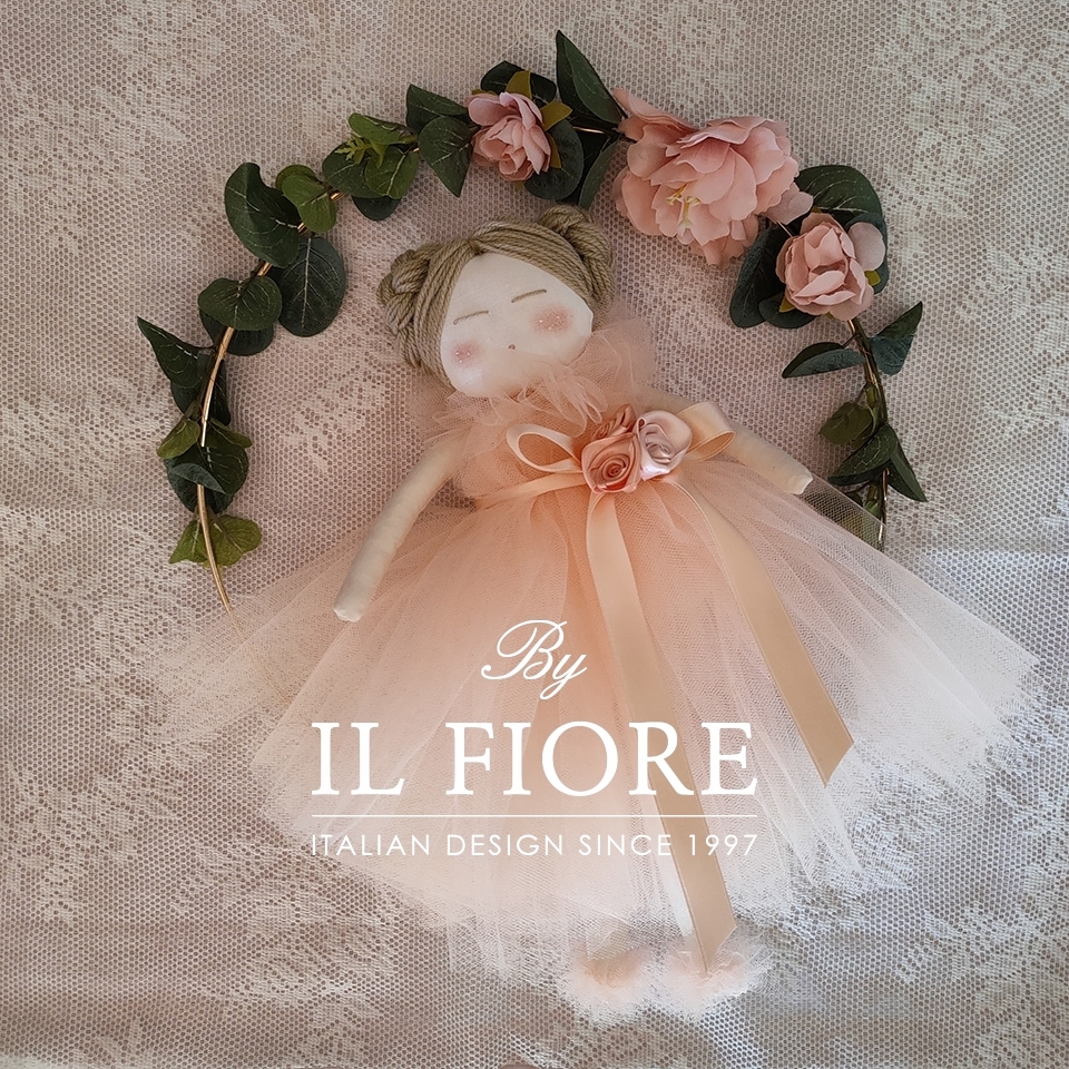 Bomboniere Cresima Bambola con Vestito in rosa cipria e fiori