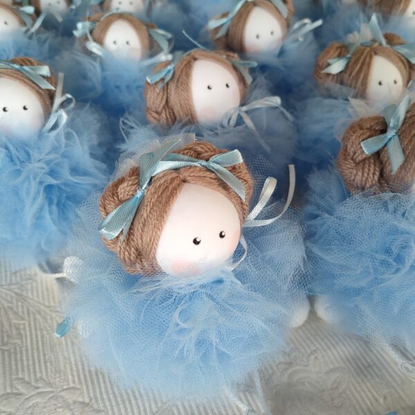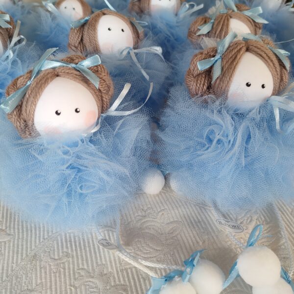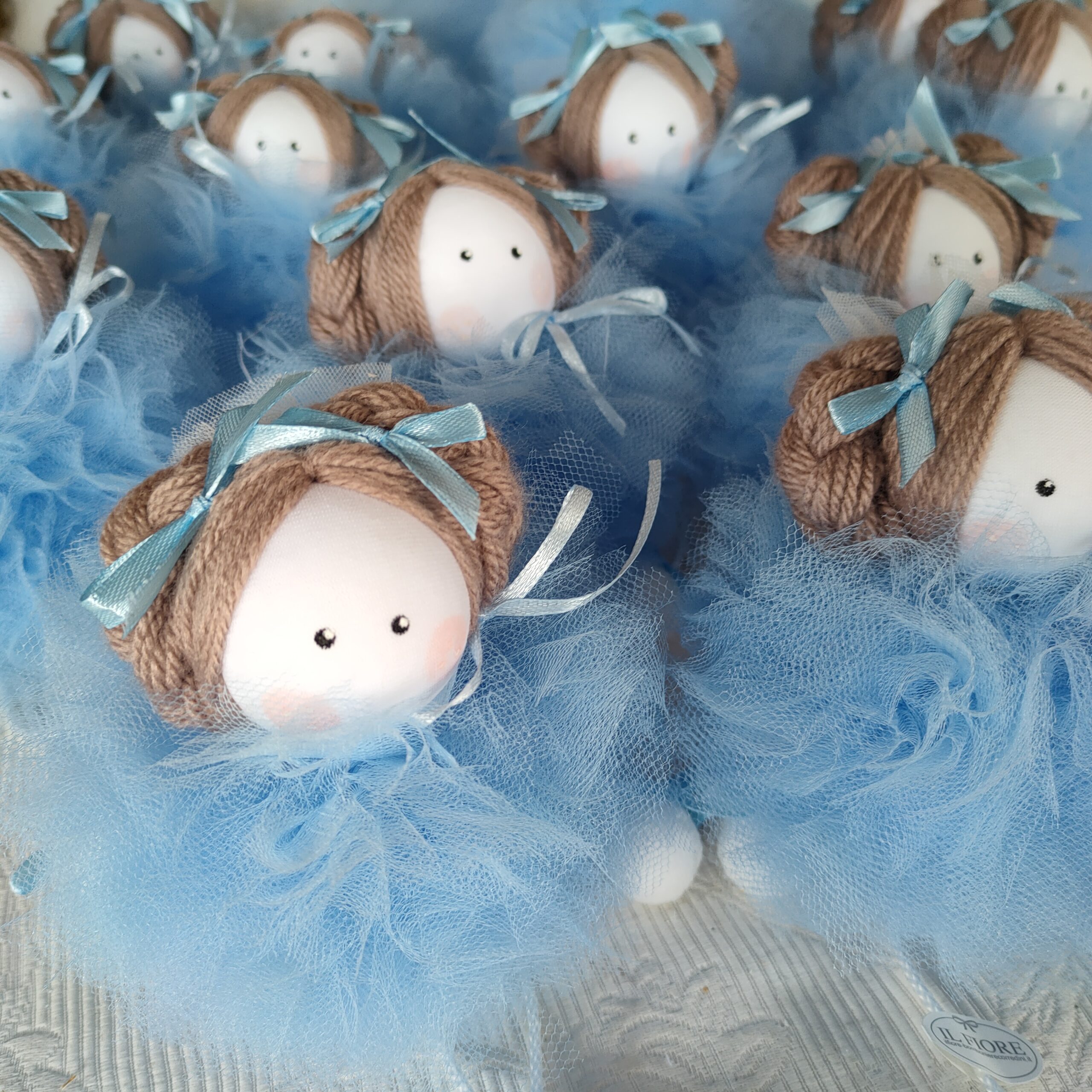 Bomboniere Cresima Bambola con Vestito in Tulle azzurro